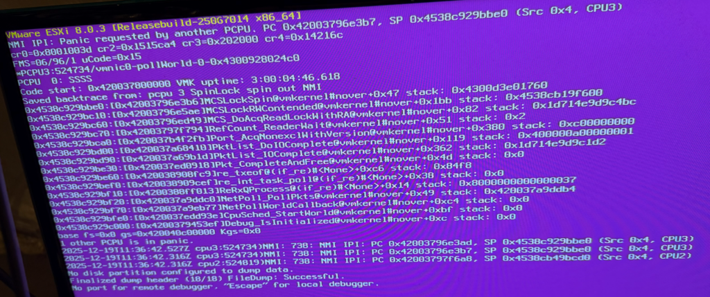 Iām trying to figure out why my Maxtang NUC is experiencing a PSOD every 3ā4 days after I started using the Realtek driver fling (there are no PSODs when using the USB fling).